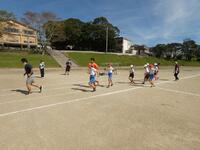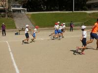 バトンパスが上手にできるようになり、最後に4人1組でリレーを行いました。
