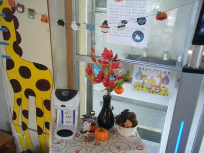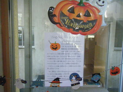 国際理解教育の一環として玄関をハロウィン仕様にしました。