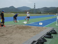 今日、串間市総合運動公園の陸上競技場で串間市の陸上記録会が開催されました。
