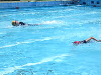 水慣れ後は、2つのチーム(3・4年チームと2・6年チーム)に分かれて碁石や小さい輪などを拾うゲームをしました。