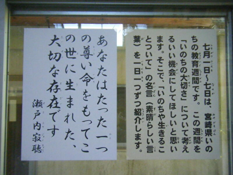 今日は、宮崎県いのちの教育週間5日目(最終日)です。