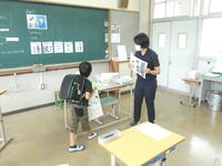 7月11日(月)に南九州大学の2年生2人を秋山小学校に招いて、交流を行いました。