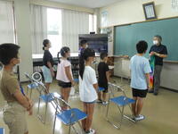 代わりに養護教諭が資料、スライド、DVDを駆使して説明をし、借りた道具を使って実技訓練を行いました。