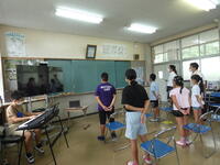 そのあとの校長の話では、1年間がんばってほしいこと(「コミュニケーション」「命を大切にする」「チャレンジ」)を夏休みも引き続きがんばるように話をしました。