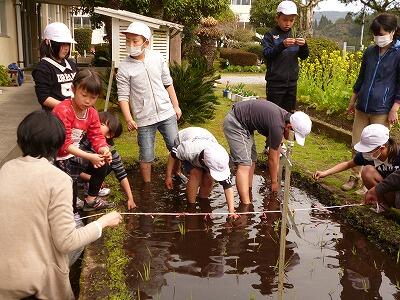 学校の敷地内にある花壇を田んぼにして,