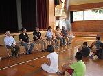 次に、体育館で、下校中に不審者が声をかけてきた場合の演習をしました。子どもたちは、不審者への対応の難しさを感じ取っていたようです。