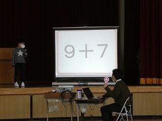算数の発表については、簡単な計算からだんだんレベルが上がっていきましたが、簡単なものは暗算で、難しいものについては途中の考え方をいいながら全部の問題を正しく計算することができました。