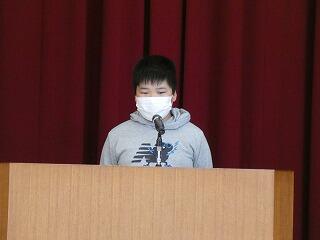 次に代表の5年児童が1年間がんばったことと6年生になってがんばることを発表しました。