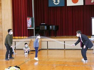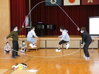 1年生は、担任と一生懸命練習して前とびが30回、後ろとびが5回できるようになりました。