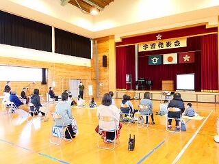 本校では、国語や総合的な学習の時間の発表の際には、聞き手を意識させるために職員や児童に呼び掛けてこのような発表会を行っています。