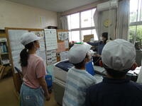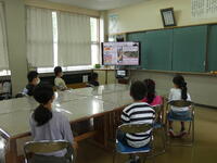 ネットでホスト役の方や大束小の5年生とつながり、チャットでやり取りしたり、答えを発表したりしながら授業が進んでいきました。