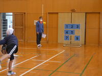 運動公園内を歩きながら、ゲーム(輪投げ、じゃんけん、豆運び)やクイズ(記憶力、商店街)をしました。