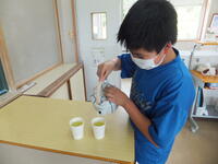 今日は北方小学校との交流学習で昼食は弁当だったこともあって、昼食時間に6年生がお茶を入れ、それをみんなで味わいました。
