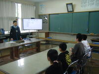 今日(4月16日【火】)に串間警察署から1名、串間地区交通安全協会から2名の方に来ていただき、交通安全教室を行いました。