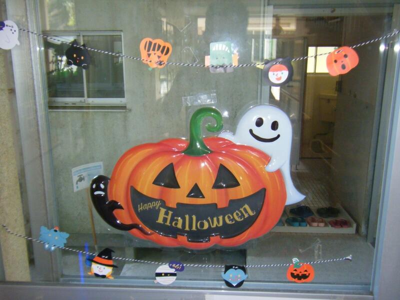 国際理解教育の一環として玄関をハロウィン仕様にしました。