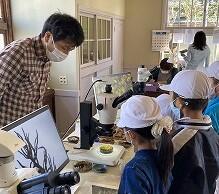 年齢制限(4年生以上)のため四半的体験ができなかった1・3年生は「服部植物研究所」へ行き、コケについて説明していただいたり、顕微鏡でコケを見せていただいたりしました。