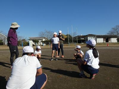 運動場の広さを感じながら、一生懸命走りました。試走後、振り返りをしました。