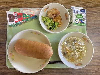 マヨネーズパン トマトスープ 焼き栗コロッケ ゆでブロッコリー 牛乳