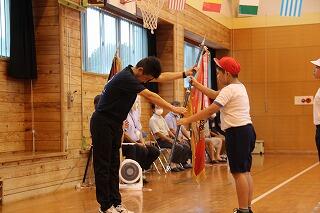 開会式後はエール交換を行いました。各団にエールを送り合った後、両団が秋山小にエールを送りました。