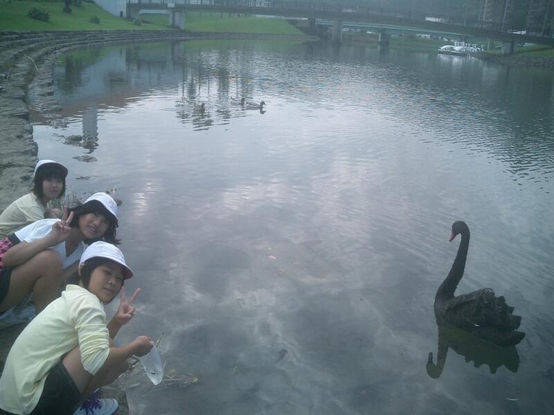 子どもの国には『ちふく川』という大きな川があり、黒鳥やカモがいました。