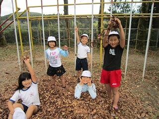最近の低学年のお気に入りの遊びは、落ち葉のベッドで遊ぶことのようです。