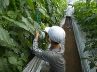 最初にメロンの収穫の仕方を教えていただき、それぞれが自分のメロンを収穫しました。