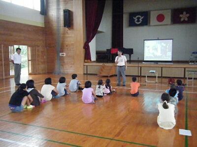 1学期終業日(7月21日)には、その千羽鶴を山里小に届けていただくよう、宮崎県原爆被害者の会串間支部長である郡司正明さんに託しました。(千羽鶴贈呈式)