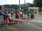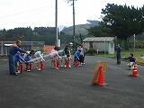 1年生は、初めての消火訓練でしたが、4・6年生や、先生、消防署員の方に教えてもらいながら、がんばって水消火器を操作していました。