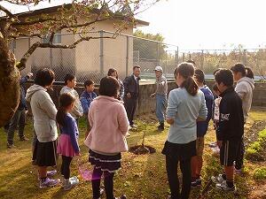 この日の放課後に、子どもたちと職員で柿の苗を植えました。