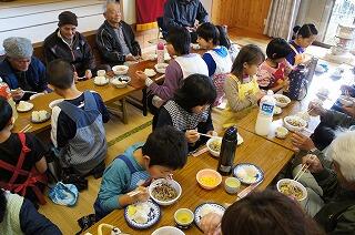今年は、高齢者の方々と一緒に和やかな雰囲気で食べました。
