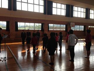 秋山地区の高齢者の方や社会教育指導員の方々をお招きしてふれあい秋山っこ祭りを行いました。今年は 特別に学校創立140周年記念で 宮崎県のシンボルキャラクターみやざき犬の3匹にもダンスを踊ってもらいました。