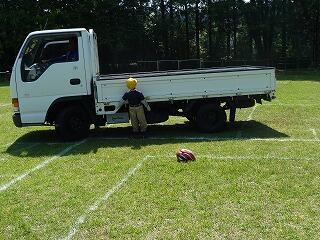 はじめに、ダミー人形を使用した、タイヤの内輪差の勉強をしました。