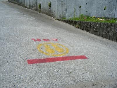 この足型は、子どもたちの家、一軒一軒のすべての玄関近くにペンキで吹き付けられています。