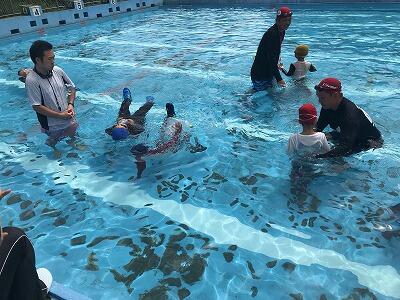 着衣の状態で水に入ると、衣類が水分を吸収してとても重くなります。児童も重さを実感することができました。