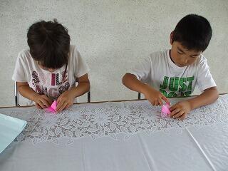 千羽鶴をみんなで作って、夏休みには長崎県の山里小学校に届けてもらいます。