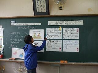 自らをふり返ったり、これからの課題や目標を見つけたりしながら、色々な意見を発表しました。「自分ならどうするか」と、一生懸命考える姿が見られました。