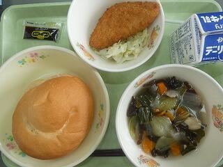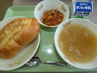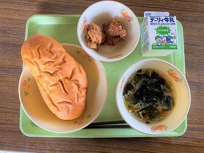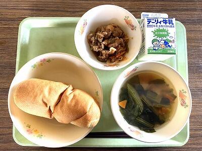 黒糖パン 野菜スープ 唐揚げ 牛乳