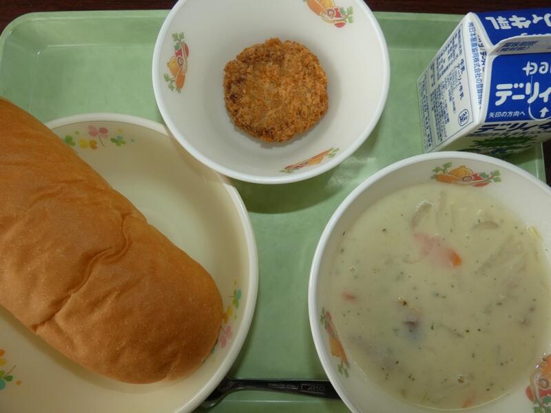 今日の給食のメニューは、じゃがいものそぼろ煮、きゅうりのピリ辛炒め、白ご飯、牛乳でした。今日は、月1回の白米の日でした。お米は、串間市のお米でミルキークイーンという品種だそうです。名前のとおりとても白くて上品なご飯でした。とてもおいしかったです。