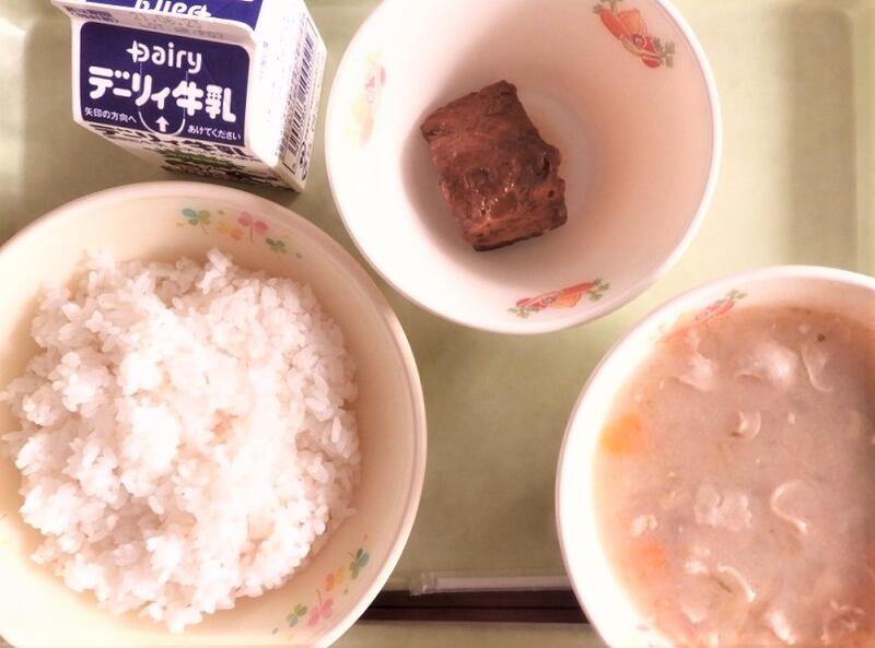 今日のおかずはおでんと味噌煮。和風の給食をおいしくいただきました!