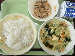 十二穀ご飯 牛乳 白菜そぼろ汁 たたきごぼう