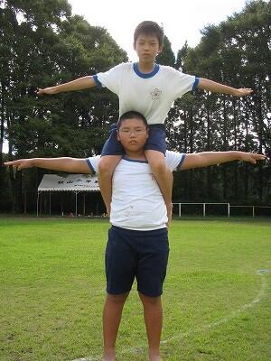 これは、全校ダンスの組体操の一場面です。