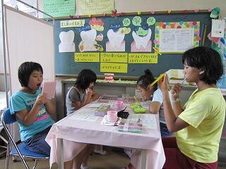先週から、3,4人ずつ給食時間を利用してブラッシングの個別指導をしています。
