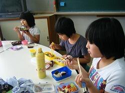 1学期は「お米を研いでご飯を炊く」、「おかずを弁当箱につめる」、「好きな味のおにぎりを作る」の3コースから選ぶことになっていましたが、自分でおかずを作ってきた児童も多くいました。