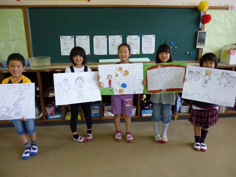 図工で、「わっすごいな」という絵を描いています。みんなが驚いたことを上手に絵に描きます。上手にできるといいですね。