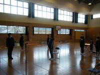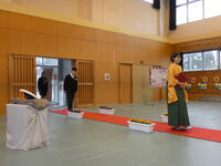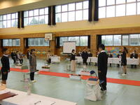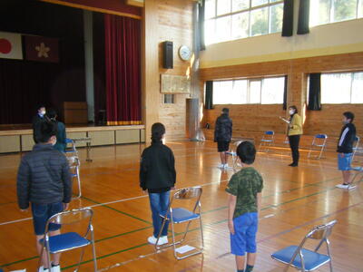 1回目の練習ということで卒業式全体の流れの確認や姿勢や起立、礼の練を行った後に入場と呼びかけ(別れのことば)、歌の練習を行いました。