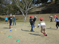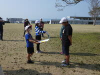 その後は、給食を一緒に摂り、昼休みに運動場でドッジビーして遊びました。