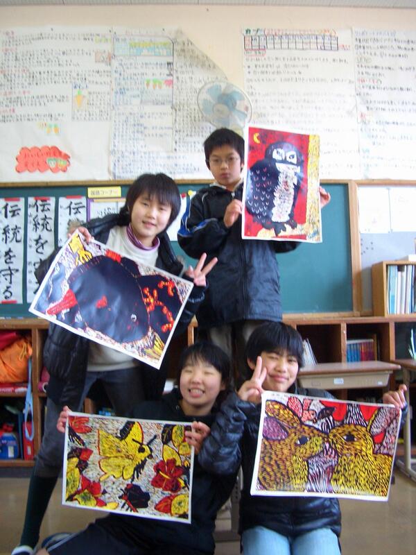 楽しみに黄・赤・青と重ねて刷っていきました。