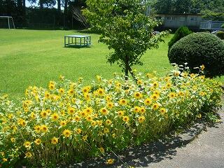 そんな中、体育館前の花壇に植えたヒマワリが今が見ごろになりました。
