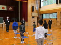 新任式では、今年度新しく秋山小に赴任した4名の職員を紹介しました。