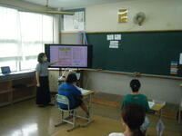 6年生は、本城小在籍の外国語の先生との外国語の授業を観ていただきました。英語で夏休みのできごとの感想をたずね合う学習でした。